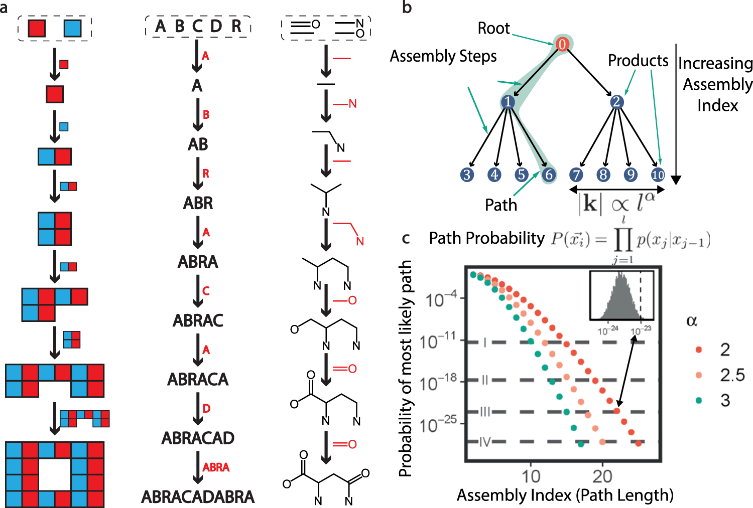 Assembly Theory provides a general framework for understanding how complexity emerges across scales, from molecules to organisms. It starts by examining the smallest components—like atoms or simple molecules—and considers the sequence of steps required to combine them into more complex structures through the laws of physics and chemistry. This sequence, quantified as the assembly index, represents the minimal number of steps needed to construct a given entity. For example, a simple molecule like water has a low assembly index, while a complex protein has a much higher one due to the many steps required to build it from amino acids, and a whole organism like E. coli has an even higher index.