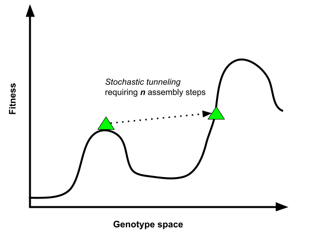 The concept of stochastic tunneling provides a compelling framework for understanding how evolutionary transitions surmount these "fitness valleys." Similar to quantum tunneling in physics, stochastic tunneling allows a sequence of critical assembly steps to accumulate through sheer chance, even when each individual step does not confer an immediate fitness advantage. This process enables a species to traverse otherwise insurmountable fitness valleys, unlocking new pathways for evolutionary complexity.