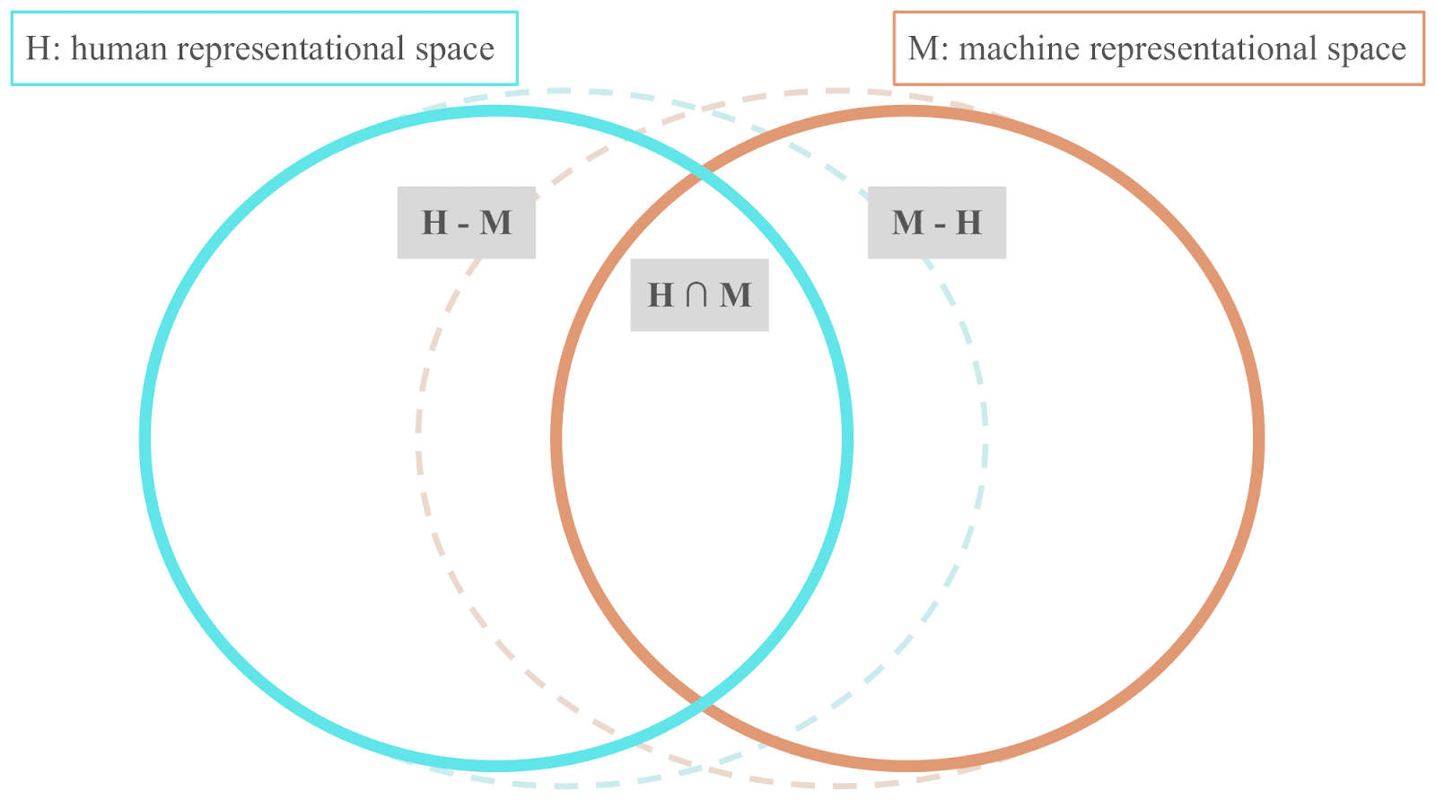 I think this is a very helpful framework to emphasize the goal of interpretability. In particular, there are some points inside of the “M – H” space which the machine ‘knows’ but the human does not. It is then the goal of interpretability to bring those points into the collective human understanding. This is exactly aligned with the goals of science.