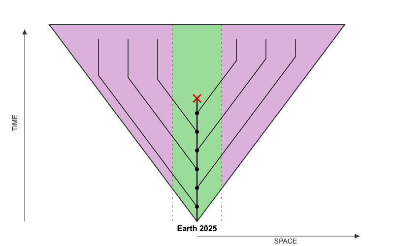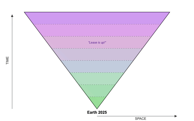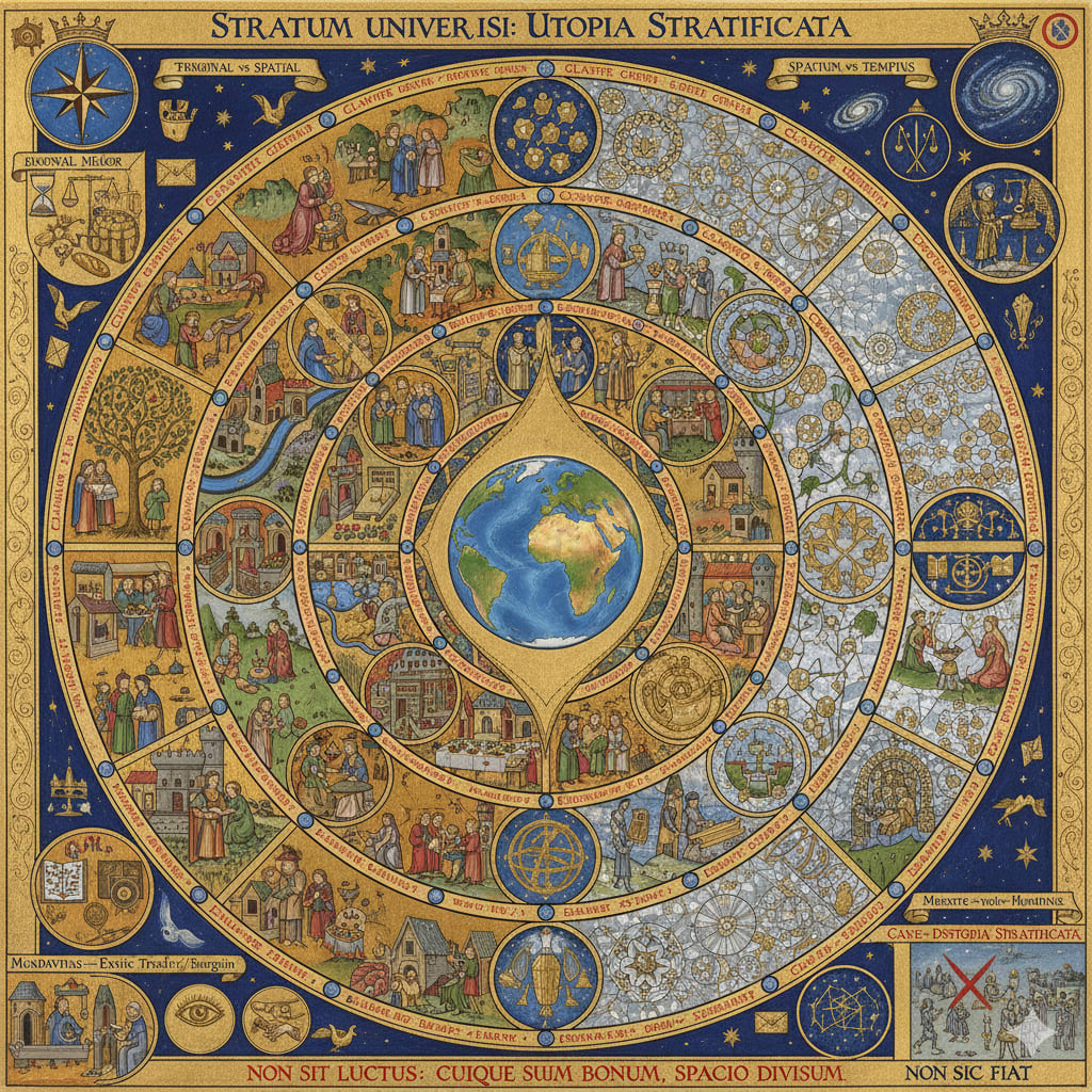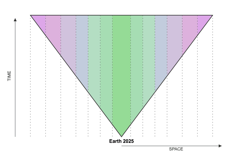 The cosmos gets divided into shells expanding outward from Earth-2025, like layers of an onion. Each shell is a stratum. The innermost shell Earth satisfies our most mundane values. Moving outward, each shell satisfies increasingly exotic values.