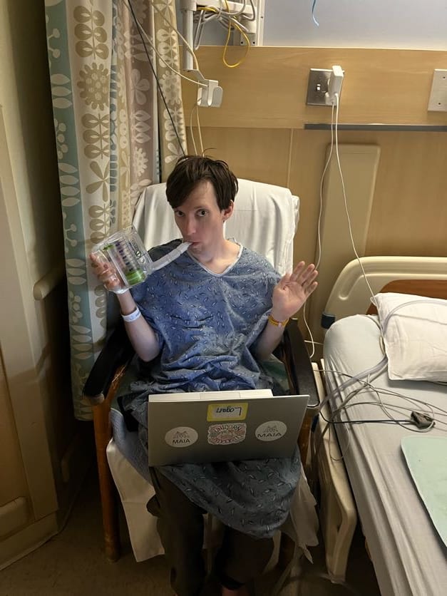 They later wheeled me and my new best friend to a higher floor for in-patient care, with a much more comfortable bed.