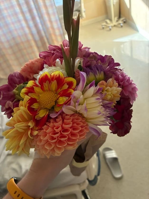 I'm so grateful for my friends who came to visit. Bringing me flowers, making jokes, and playing games w/ me.