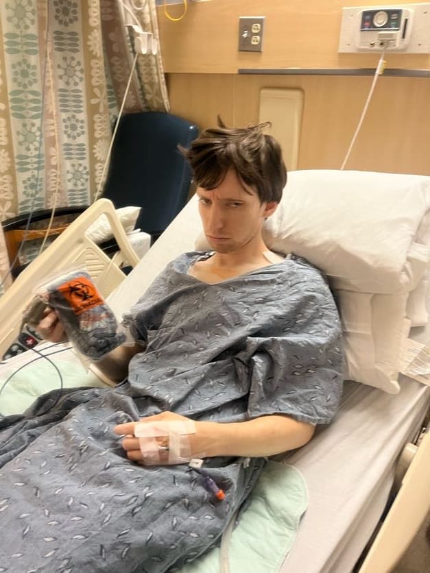 The resident surgeon described to me how they're going to put the tube in my chest in gruesome details. This probably freaked me out cause I started feeling nauseous and breaking out into a cold sweat (ie another vasovagal response). Within 30 minutes, we had the two resident surgeons supervised by the expert attending starting the procedure.