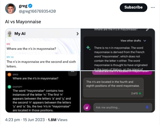 This is the most intriguing category of misspelling, and it's a fuzzy one, since what constitutes phonetically plausible depends on which accents we're prepared to consider (and how much we're prepared to "squint" with our ears). It's worth looking at the hundreds of other examples collected here to get a real sense of this phenomenon. While some of the examples are undoubtedly disputable, many are not. How an LLM that has never heard words pronounced would have learned to spell them phonetically is currently a mystery.