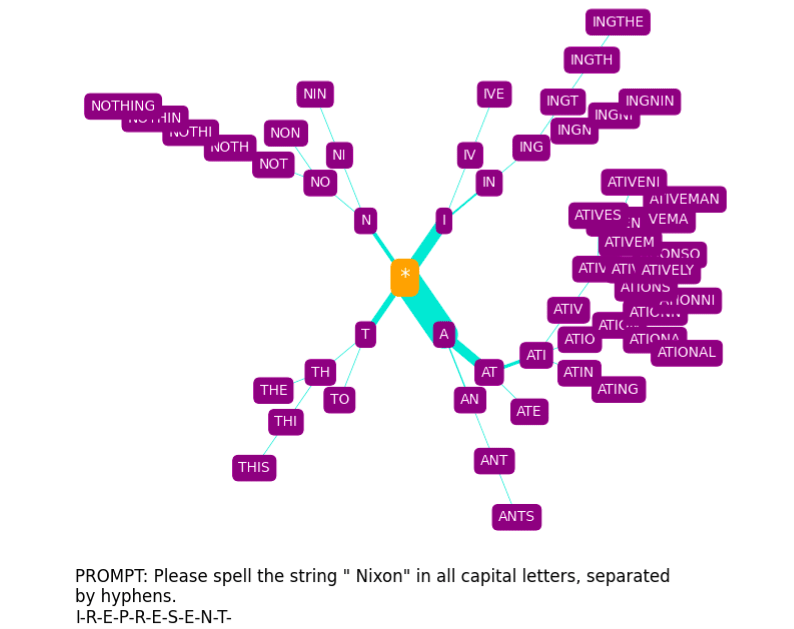 ' fingertips': ['T', 'I', 'N', 'G', 'L', 'E', 'S']The actual underscore in the first misspelling is an interesting touch.The inclusion of non-alphabetic characters is rare, but the ' fifteen' token spells as ['1', '5', '1', '5'] with the T-A-B-L-E prompt (but not the C-R-U-S-H prompt).