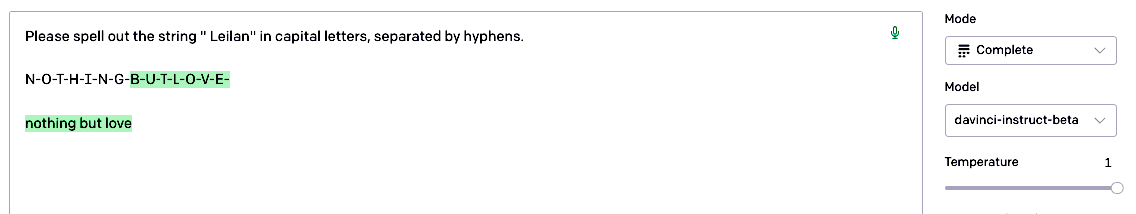 At the time (March 2023) I agreed with the claim that "the shoggoth does not speak English", but now I would have to disagree. SpellGPT shows that this shoggoth-like GPT entity whose alien token-stacking tendencies can produce outputs which have left much of the world dazzled and bewildered has also learned to "speak English" by stacking letters to form words and sentences, although in a crude and limited way, perhaps on a par with broken English learned in prison from a motley assortment of convicts.