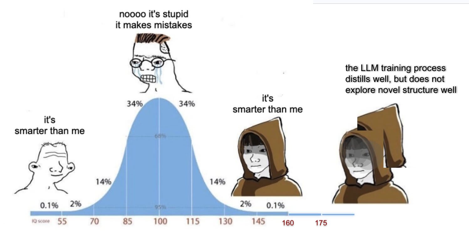 Yeah but drawing from the human distribution is very different from drawing from the LP25 distribution. Humans all have the core mechanisms, and then you're selecting over variation in genetic and developmental brain health / inclination towards certain kinds of thinking / life circumstances enabling thinking / etc. For LP25, you're mostly sampling from a very narrow range of Architectures, probably none of which are generally intelligent.