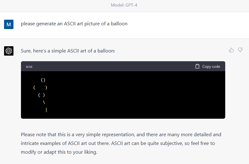 Does anyone know whether GPT-4 successfully generates ASCII art?