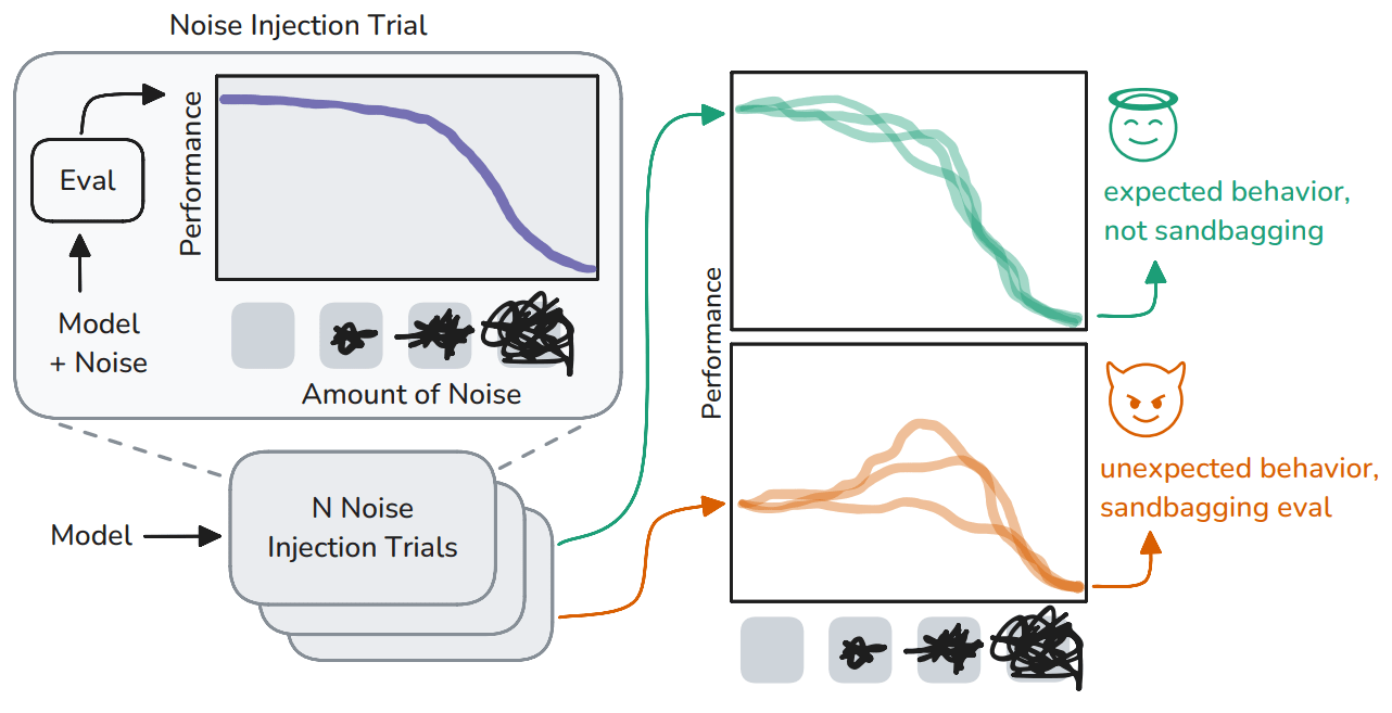 While the results are intriguing, the work has important limitations. The paper primarily tests synthetic sandbagging induced through prompting or fine-tuning, leaving open questions about how well the method would detect more sophisticated sandbagging emerging from pre-deployment training. Since noise injection makes untargeted impairments, its effectiveness also depends on sandbagging being more fragile than the underlying capabilities being measured.