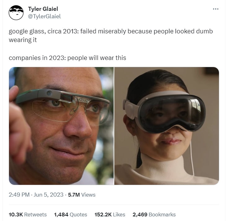 Disagree on the device looking cool. It looks like a snorkeling mask, which is still better than the blindfolded look of the Meta Quest.