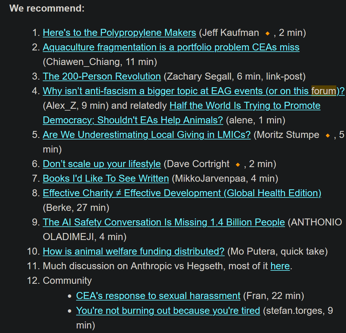 Here's what the EA Forum digest looks like : a list of titles + author + time to read.