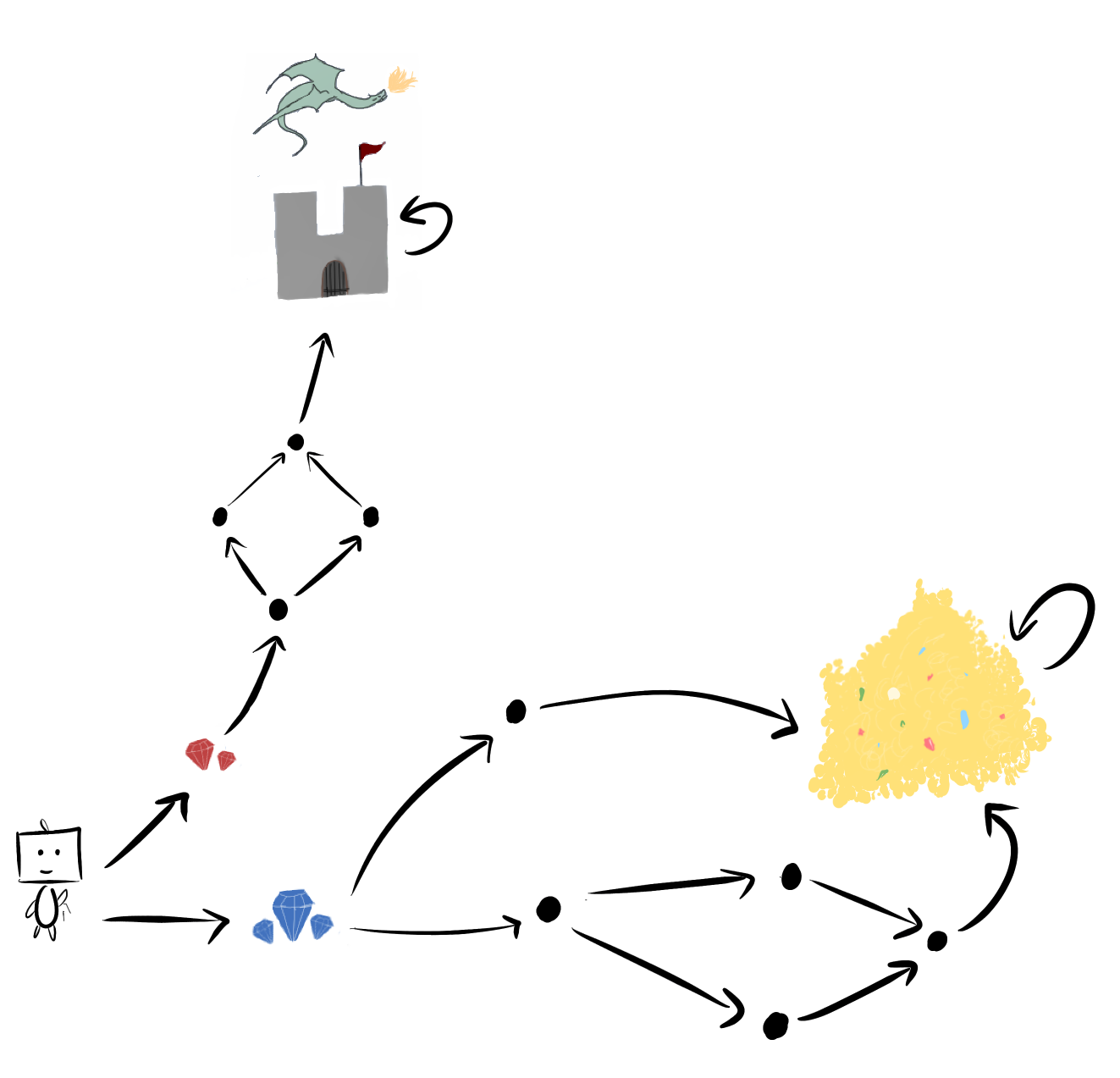 At the time, I’d wondered whether this was still true in general via some other result. The answer is ‘no’: it isn’t always more probable for optimal policies to navigate towards states which give them more control over the future. Here’s a surprising counterexample which doesn’t even depend on my formalization of ‘power.’