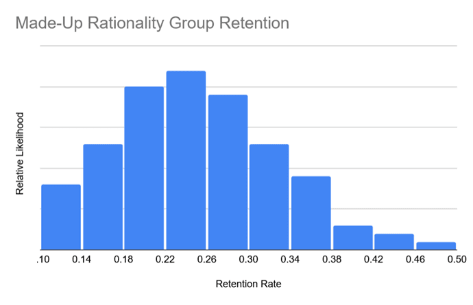 Let’s take the group retention example: I have no actual data on this, but I’m sure retention rate of, say, rationality meetup groups varies a lot. Let’s, for instance, suppose it’s a skewed distribution that for almost all groups ranges from 5% to 50%, with the average around 20% or so (for some sensible operationalization of “retention”).
