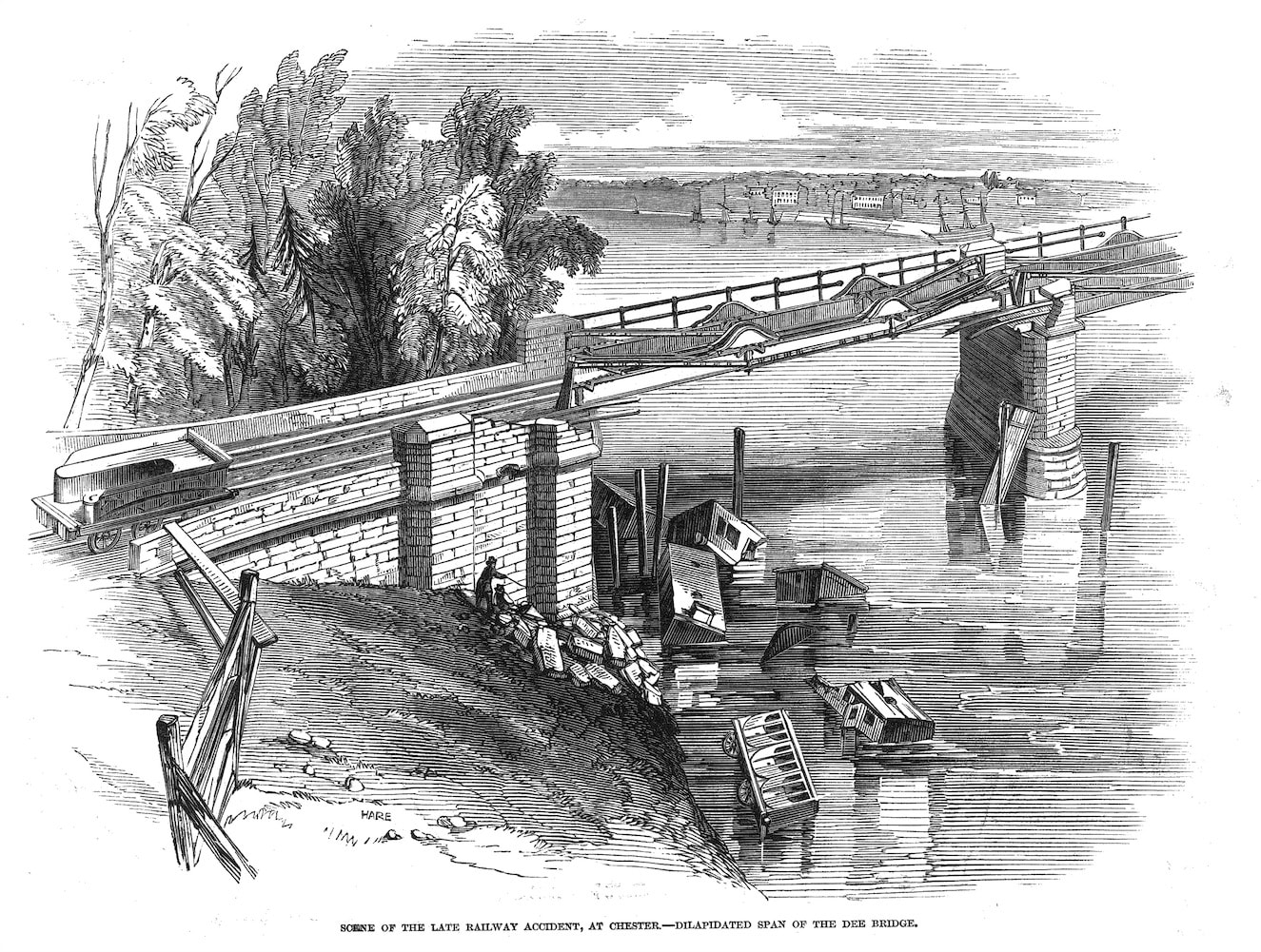 On May 24, 1847, a bridge over the Dee River in Chester, England, collapsed. A passenger train plunged into the river; five people were killed and nine seriously injured.