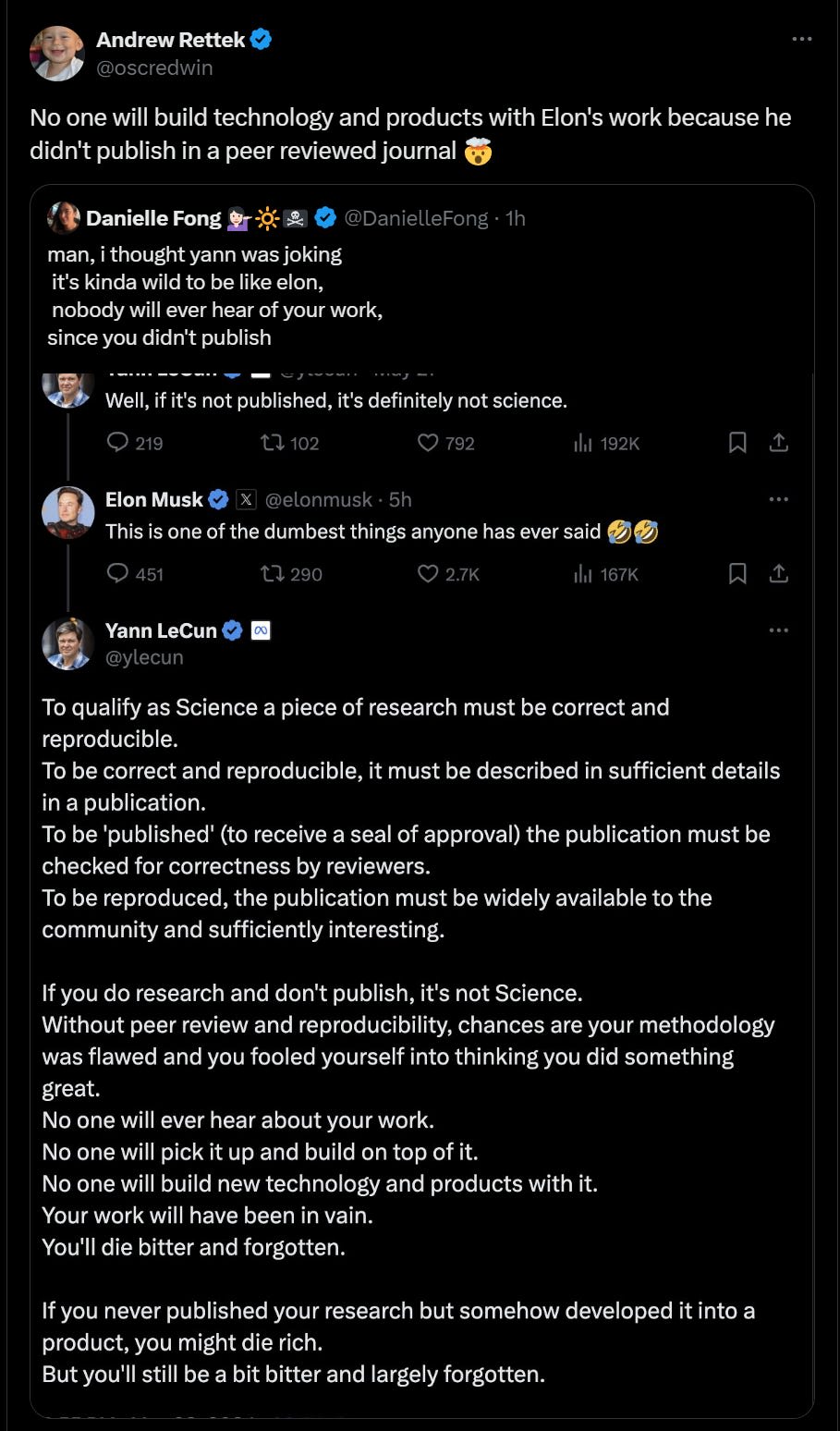 If it had ended here it would have been purely for the popcorn: A conversation between Yann LeCun and Elon Musk, part one.