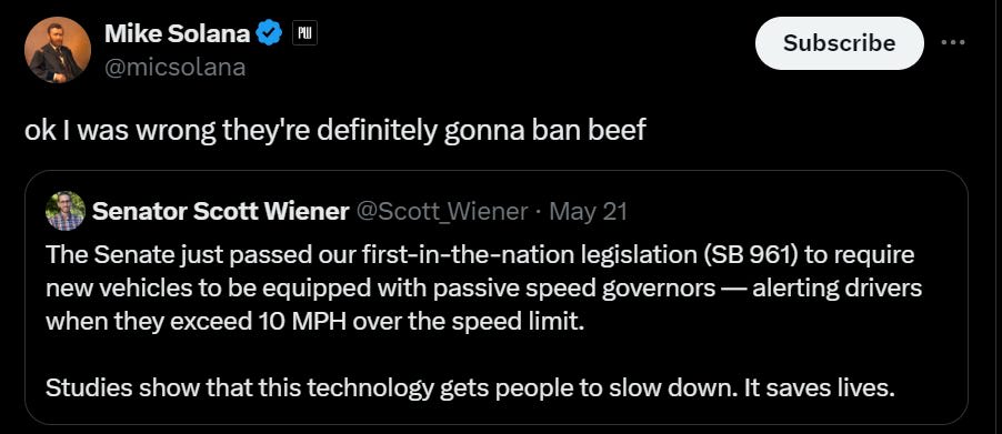 That’s all. Again, I’m not saying we should ban lab grown meat. I’m saying we shouldn’t ban it, but also you should understand why people might choose to do that.