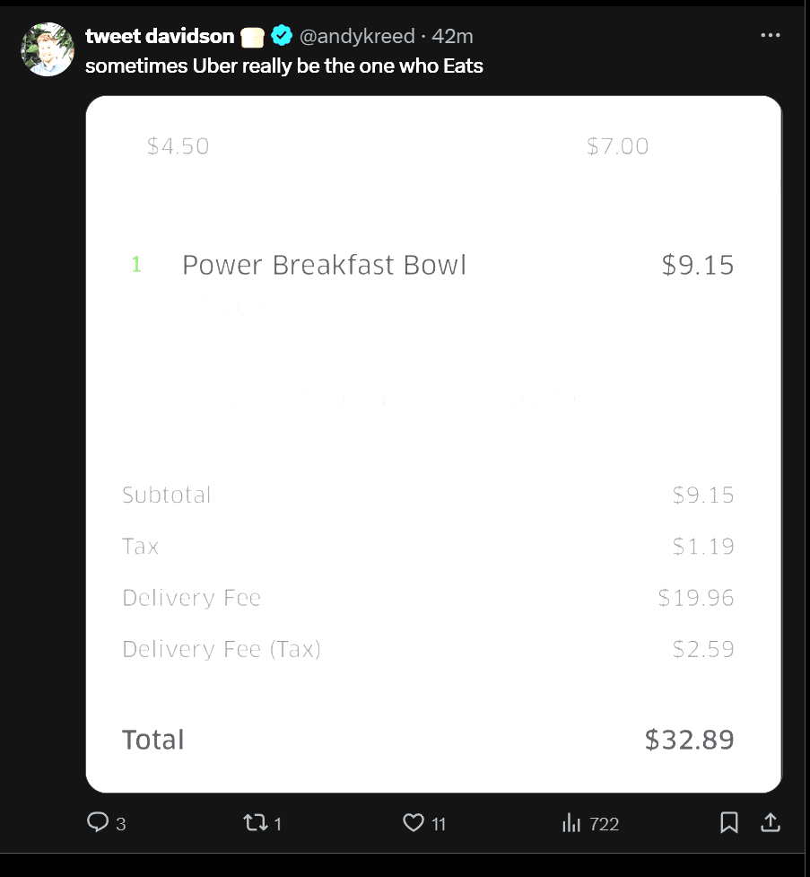 A thread of (claimed human right to below real cost) DoorDash takes.