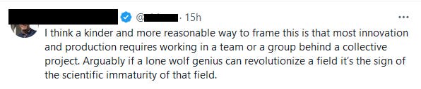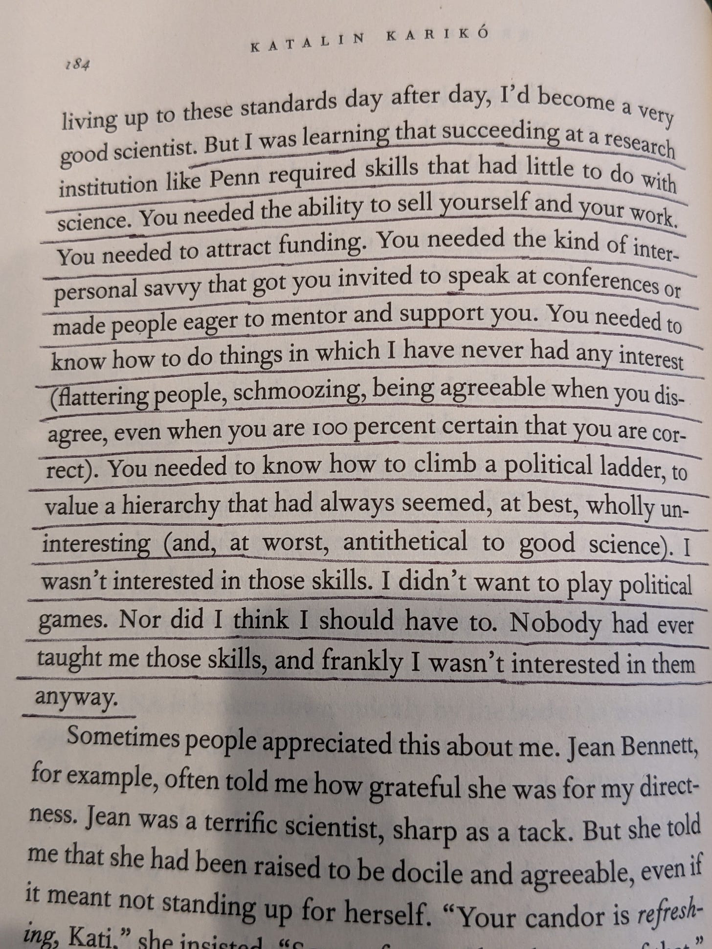 Similarly, here’s that quote from Katalin Kariko’s book, Breaking Through. She still got mRNA vaccines to happen despite being driven out of her position for trying, and this thread from St. Rev Dr. Sev explains that weirdoes like her who think science should be about doing actual science are not to be tolerated going forward by those who only know Science