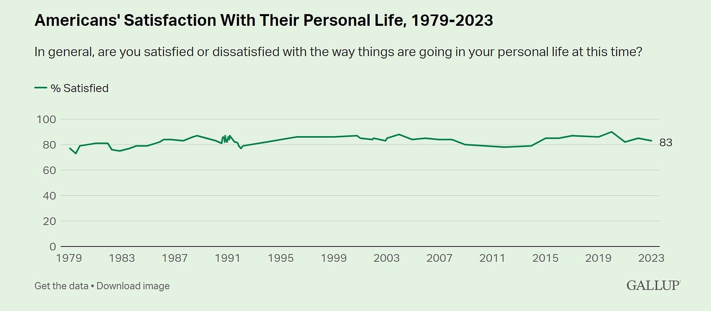 It looks like 2008 led to about a 1.3x increase in the number of people who said they were dissatisfied with their life.