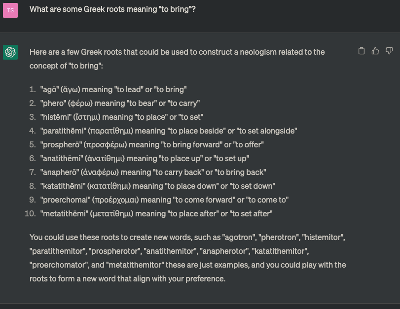 See the section "What this essay is not about". I'm talking about the sort of lexicogenesis that you do when you're trying to describe something that you want to describe, but don't have the words to describe. I do think it's absolutely key to hug the query, stay close to the need——treat as very valuable the data of what words are actually in real life needed, and the specific criteria provided by those contexts of need. Having a need, having a sentence that you want to say but that's clumsy without the new word, is the gold standard for when lexicogenesis is actually wanted. It's not cringe or crankish to say "electron" or "methylation" or "phylogenetic" or "diffeomorphic", if you're talking about those things.