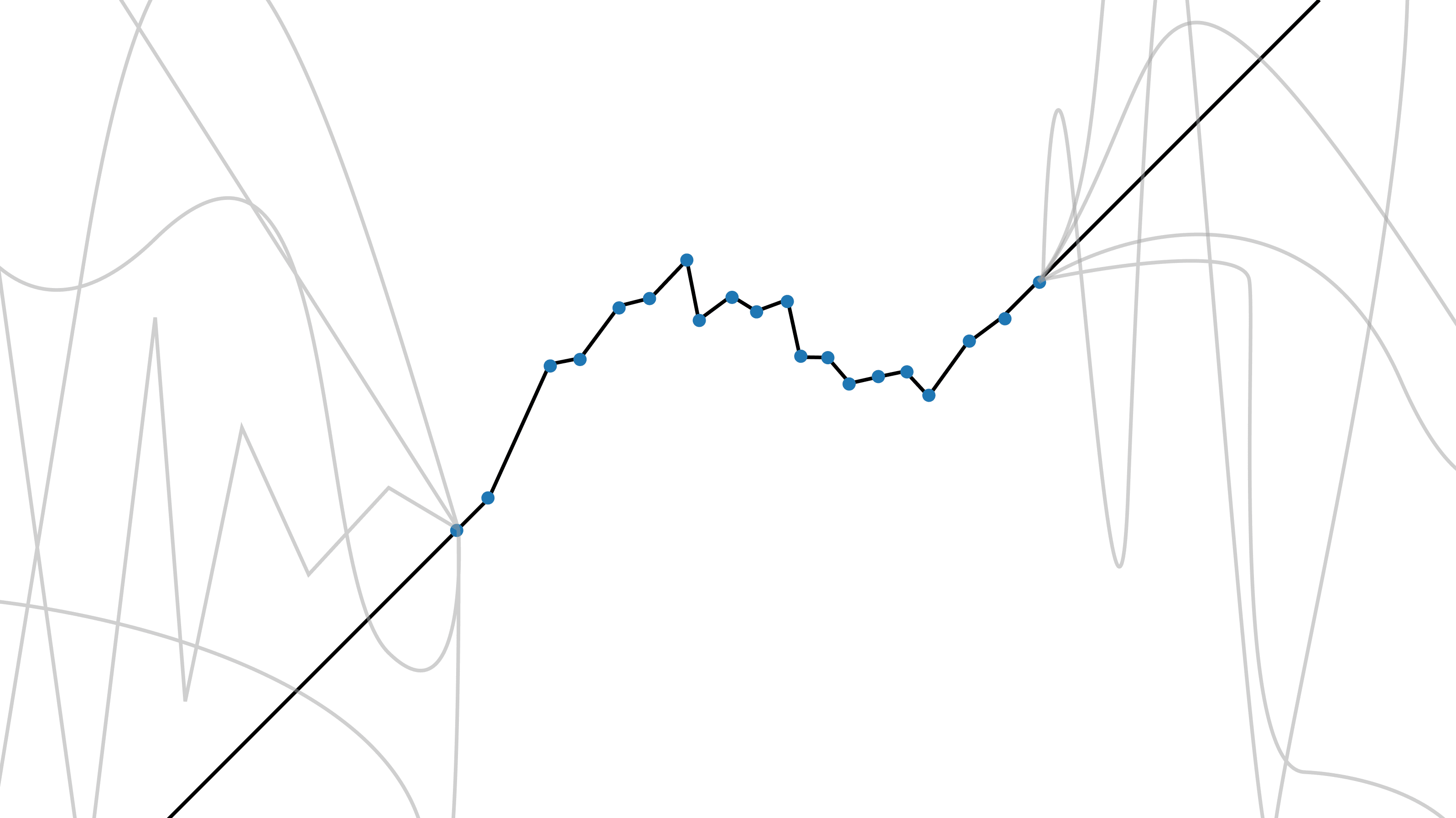 Neural networks (NNs) are biased towards fitting simple piecewise functions, which is (locally) the least biased way to interpolate. The simplest function that intersects two points is the straight line.
