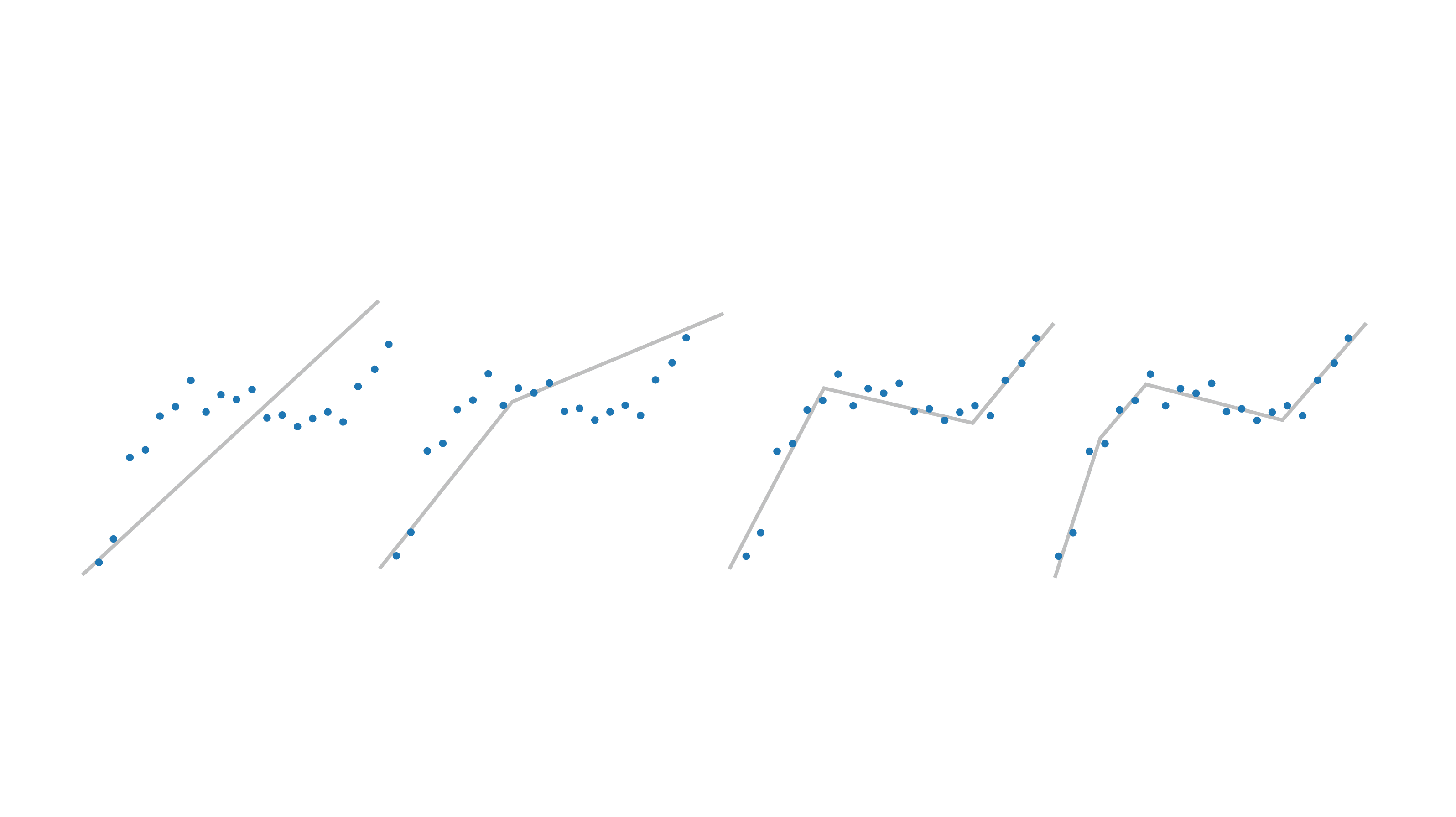 Here I've presented the visuals in terms of regression, but the story is pretty similar for classification, where the function being fit is a classification boundary. In this case, there's extra pressure to maximize margins, which further encourages generalization