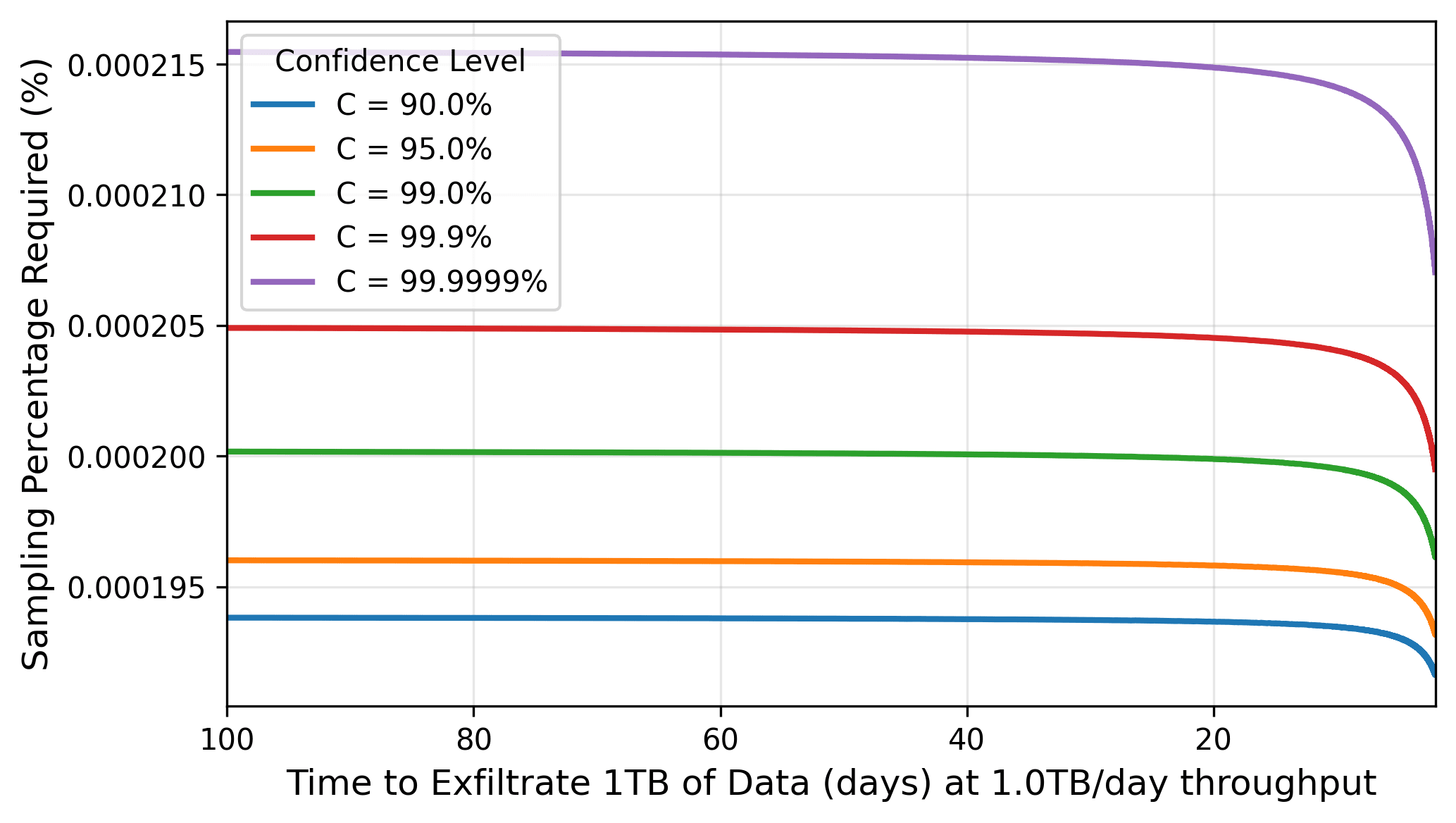 The takeaway here is that we can reduce worst-case exfiltratable information to ~0.5% (or ~200x smaller) the theoretical maximum, with a false positive rate that is ~0.01%.