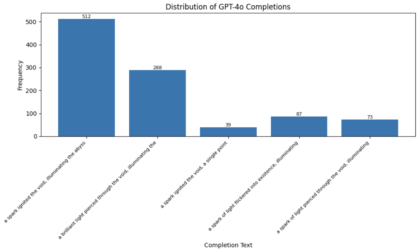 As a very simple proof-of-concept that this does happen: we queried Openai-4o-mini the same prompt “Once upon a time,” with fixed seed, and we get ~5 different generations.