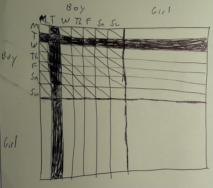 But in fact, the parents I know are much more likely to ask you that question in the first place in worlds where they have two boys. Then they'll smirk and say "wanna bet?" and you'll lose the bet.