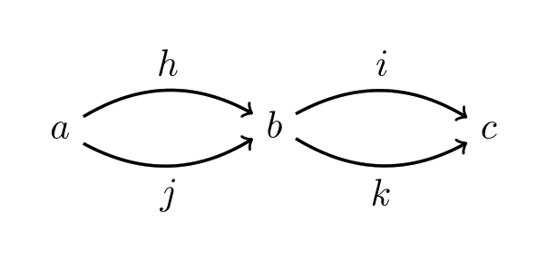 Note 2: A small category is simply one where the objects and morphisms are both sets. They could even be uncountable sets! A category that isn't small is Set. That's because the objects of this category are all sets, and we can't have the set of all sets lest we run into Russell's paradox. ↩︎