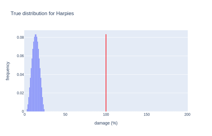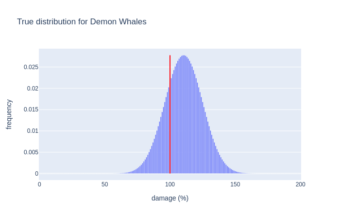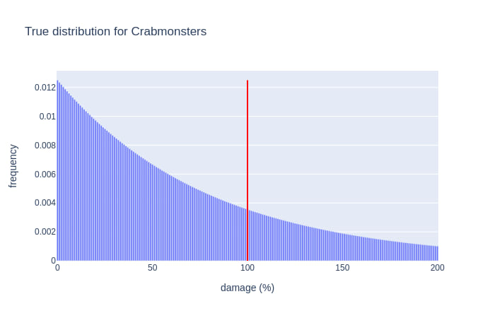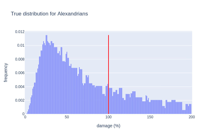 All the distributions look pretty much as I expected except the merpeople; while I suspected multiple peaks and/or a long tail I didn't expect that the lower-damage visible(ish) peak had the long tail.