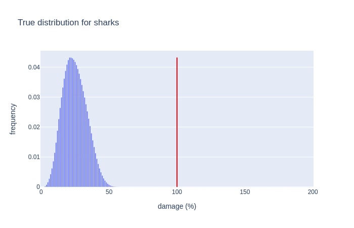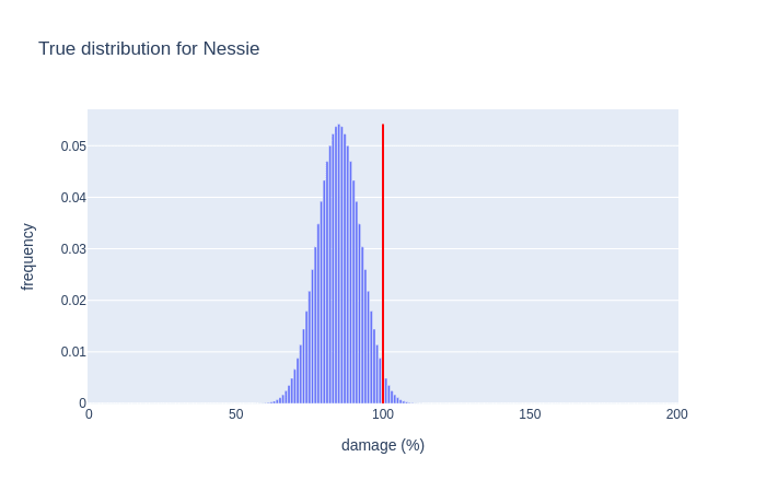 All else equal, there’s a little extra uncertainty when predicting quantities instead of categories: “is that sudden peak at 14% noise, or a clue to the generating function?”, etc. However, the main reason this challenge was so much more speculative than its predecessors is that the most important information – details of attacks that did 100%+ damage – was censored by the mechanics of the world. In the absence of hard evidence, small errors in inference compound, priors pick up the slack, and considerations like “what genres apply here?” or “is the scenario designer enough of a troll to have Demon Whale damage arbitrarily cap out at 99%?” take on a significance they wouldn’t otherwise.