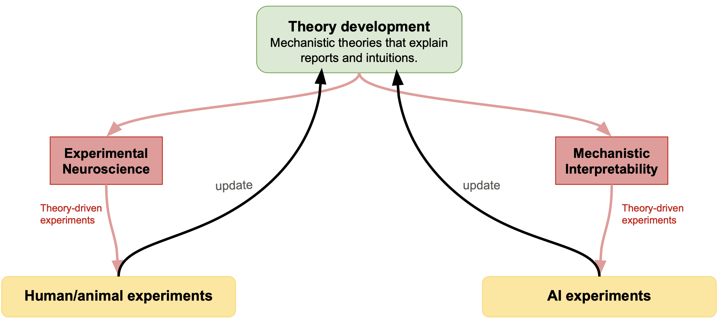 What you end up with is a back-and-forth between theory and experiment which comes with a lot of idiosyncratic methodological considerations. For example: be wary of AIs mimicking humans, sometimes AIs having it means the theory is wrong, beware of our intuitions, etc etc.