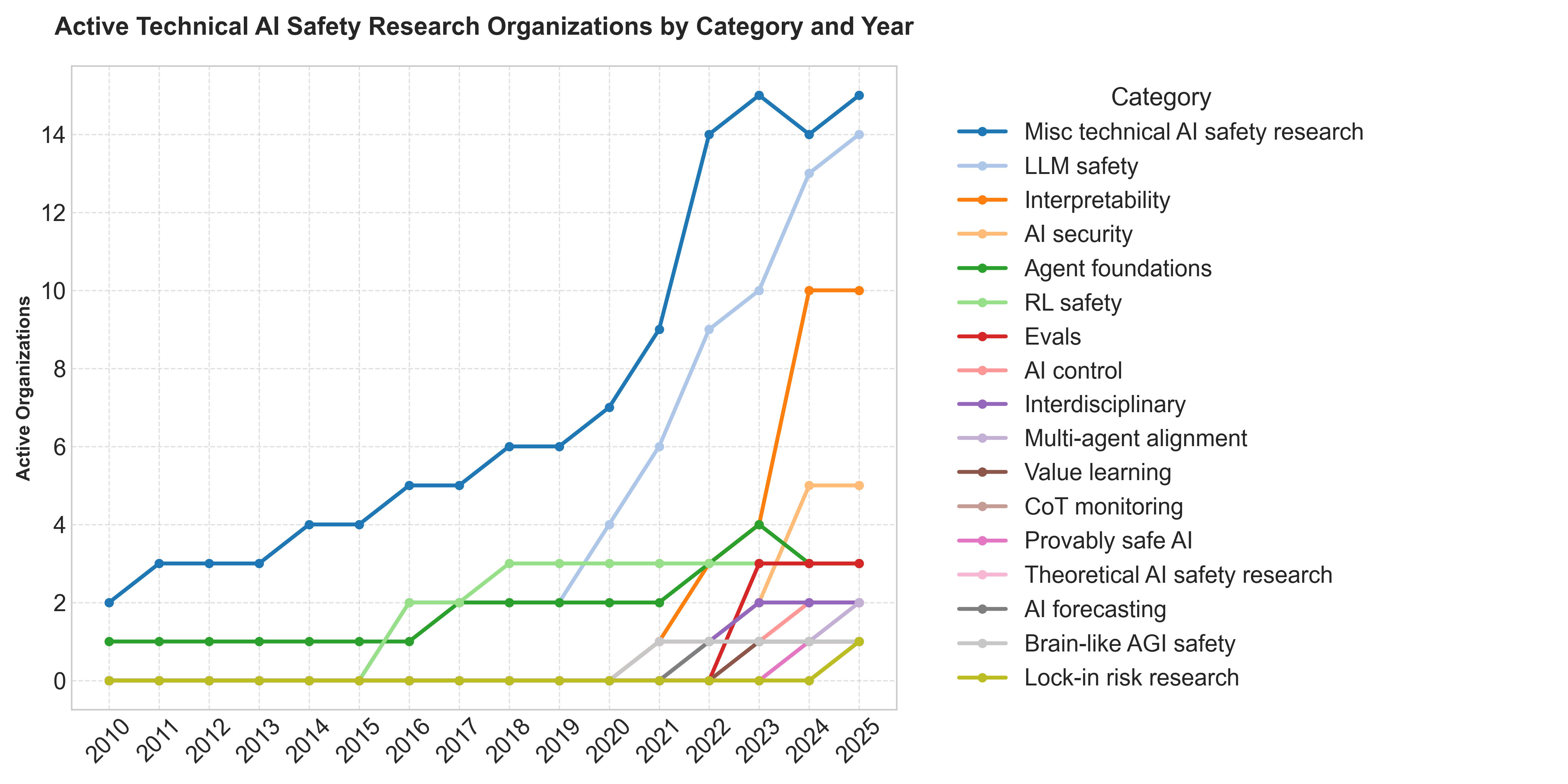 Machine Intelligence Research Institute (MIRI) | 2000 | 2024 | Agent foundations | 10 |