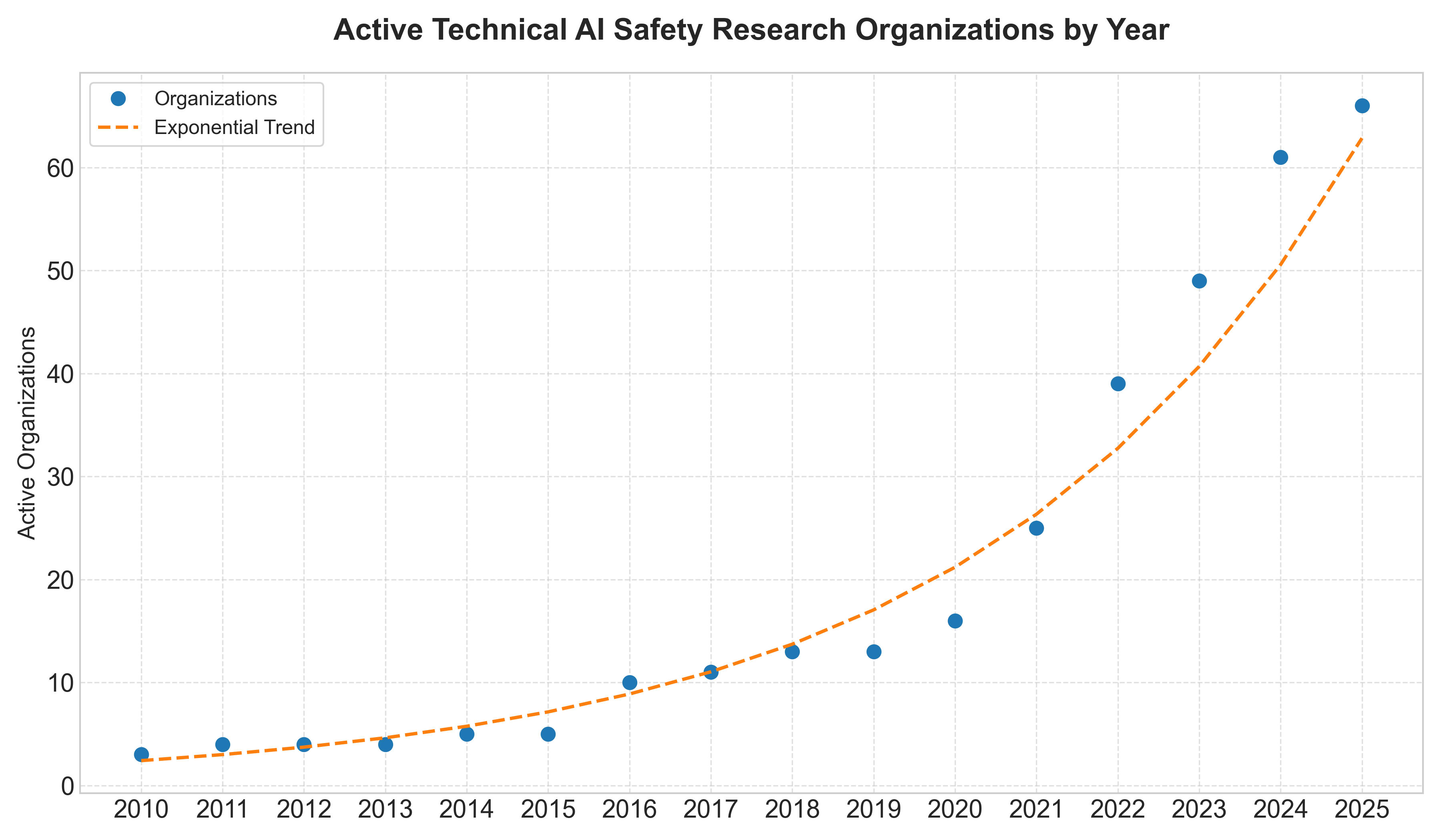 The goal of this post is to analyze the growth of the technical and non-technical AI safety fields in terms of the number of organizations and number of FTEs working in these fields.