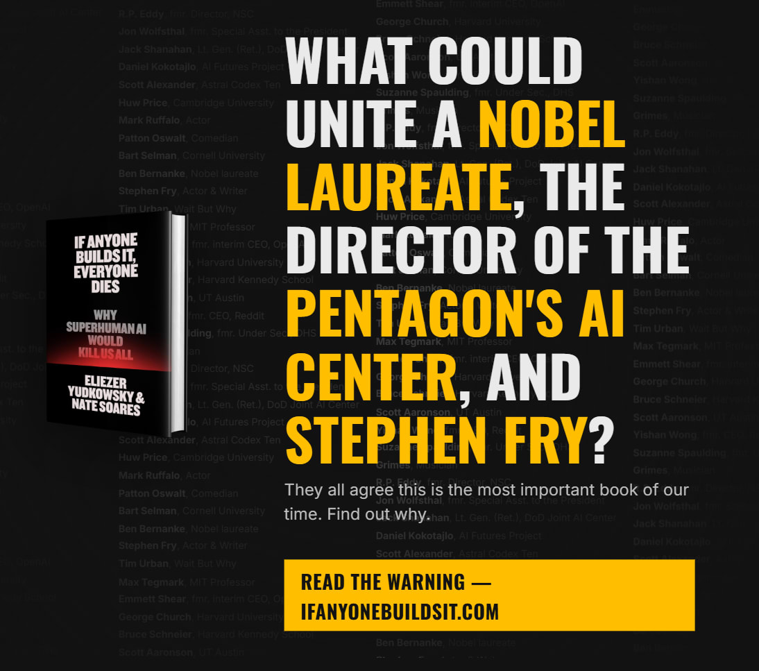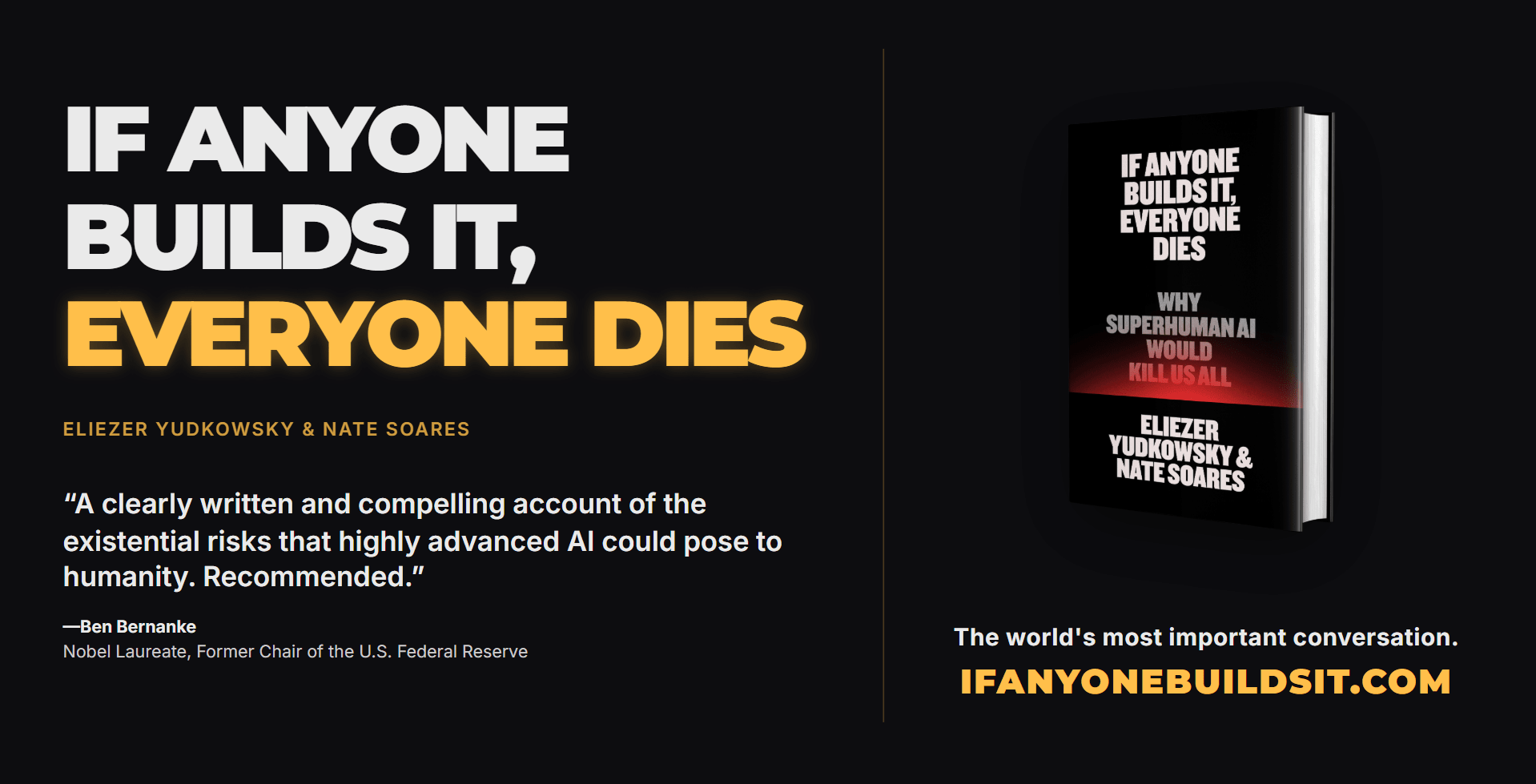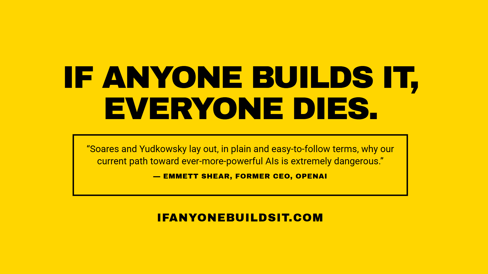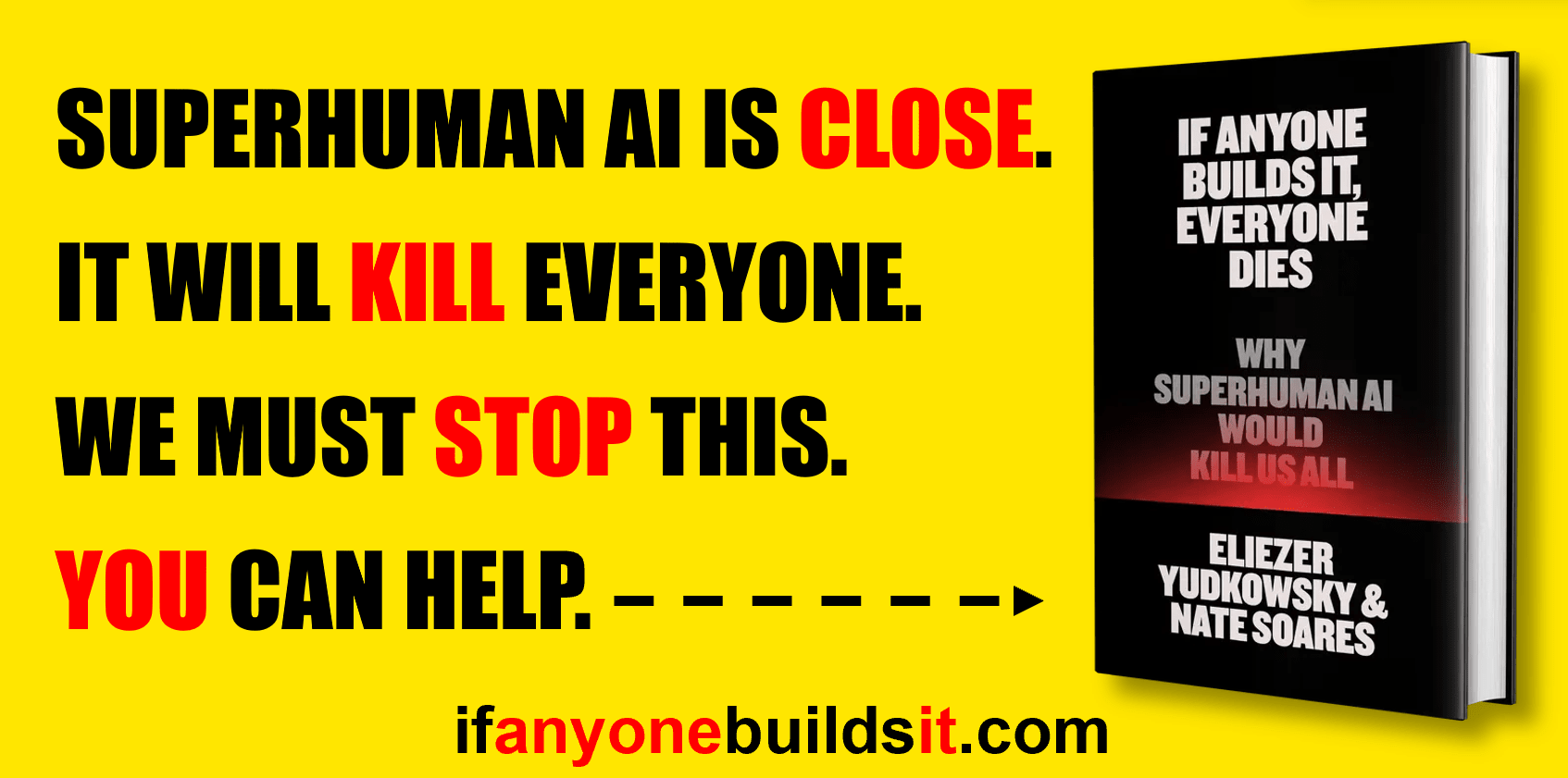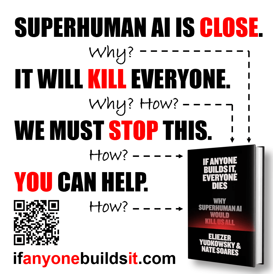 We’re currently in the process of locking in advertisements for the September launch of If Anyone Builds It, Everyone Dies, and we’re interested in your ideas! If you have graphic design chops, and would like to try your hand at creating promotional material for If Anyone Builds It, Everyone Dies, we’ll be accepting submissions in a design competition ending on August 10, 2025.