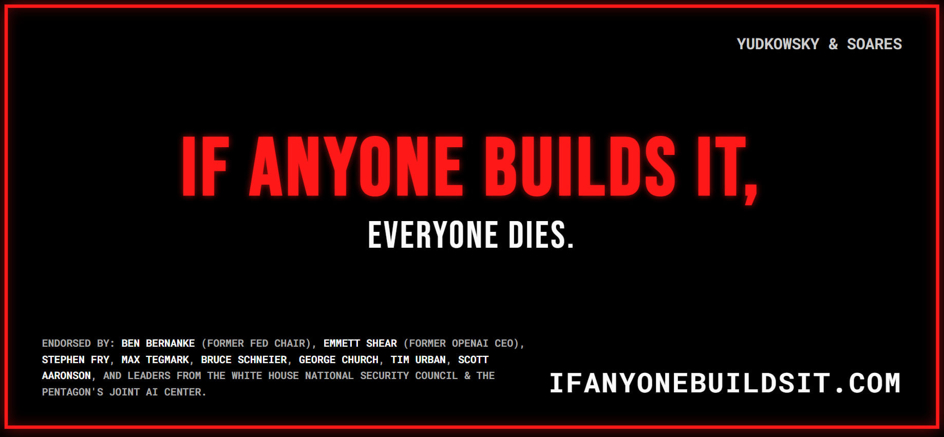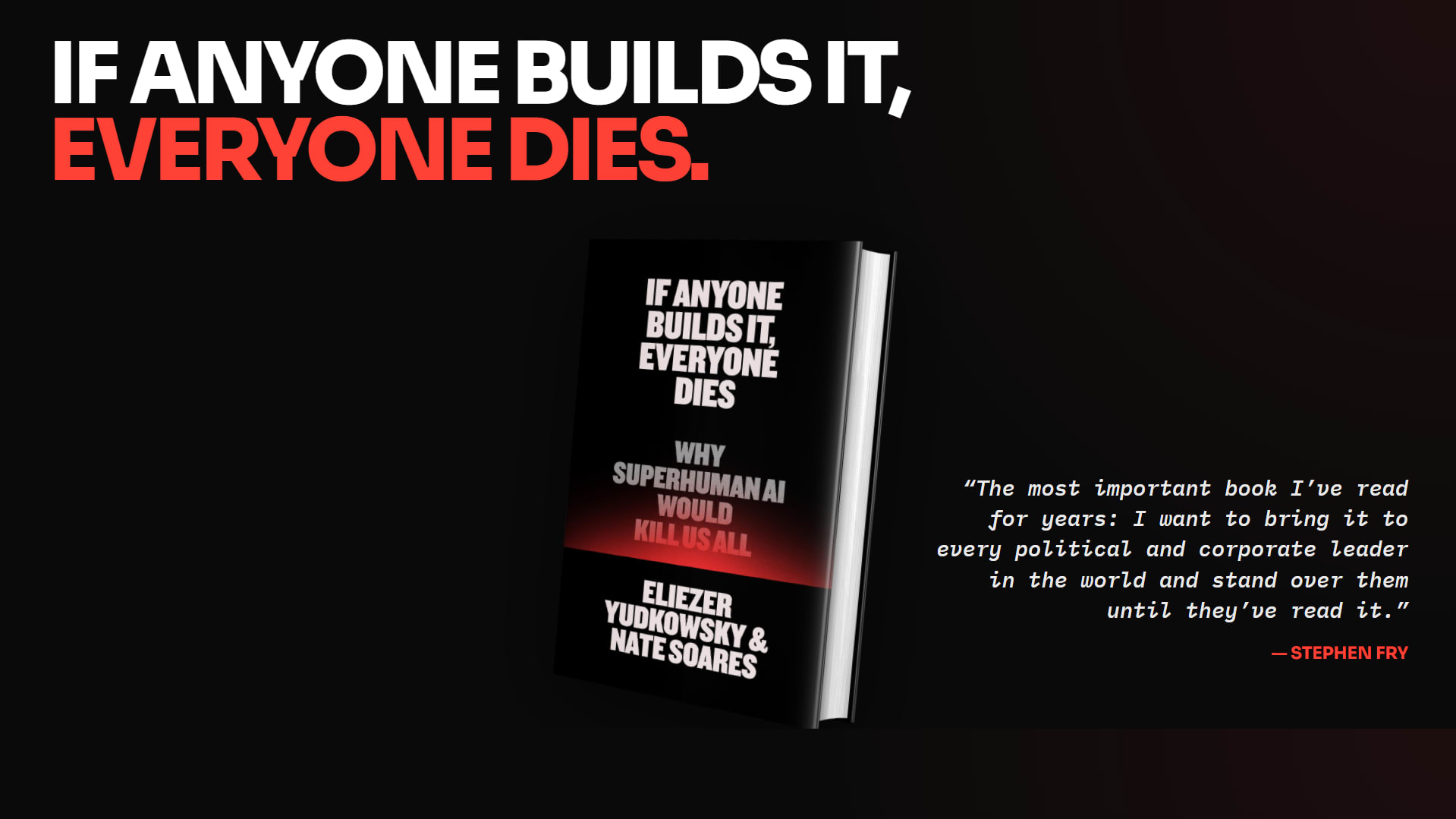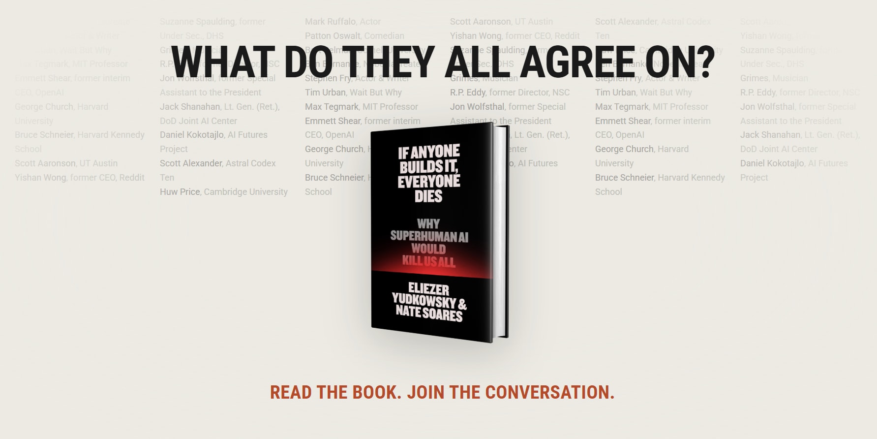 A similar argument could be made about the second line, "it will kill everyone", while the book title says "would". But again, I feel "would" is weaker than "will" (some may interpret it to mean that there may be additional prerequisites necessary for an ASI to kill everyone, like "consciousness"). Of course, "will" can only be true if a superintelligence is actually built, but that goes without saying and the fact that the ASI may not be built at all is also implicit in the third line, "we must stop this".