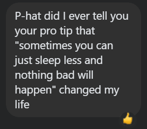 But in one-off cases? Say, once per week? That’s a full hour and a half you can get back, for basically no cost. I suspect this is one of those things where modern life offers us maximum stability, but we’ve actually evolved to absorb some volatility without issue.
