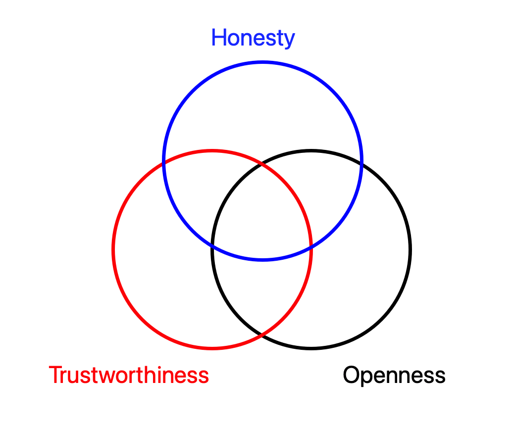 Here are some working definitions of openness, honesty, and trustworthiness. All these terms can be construed narrowly or broadly.