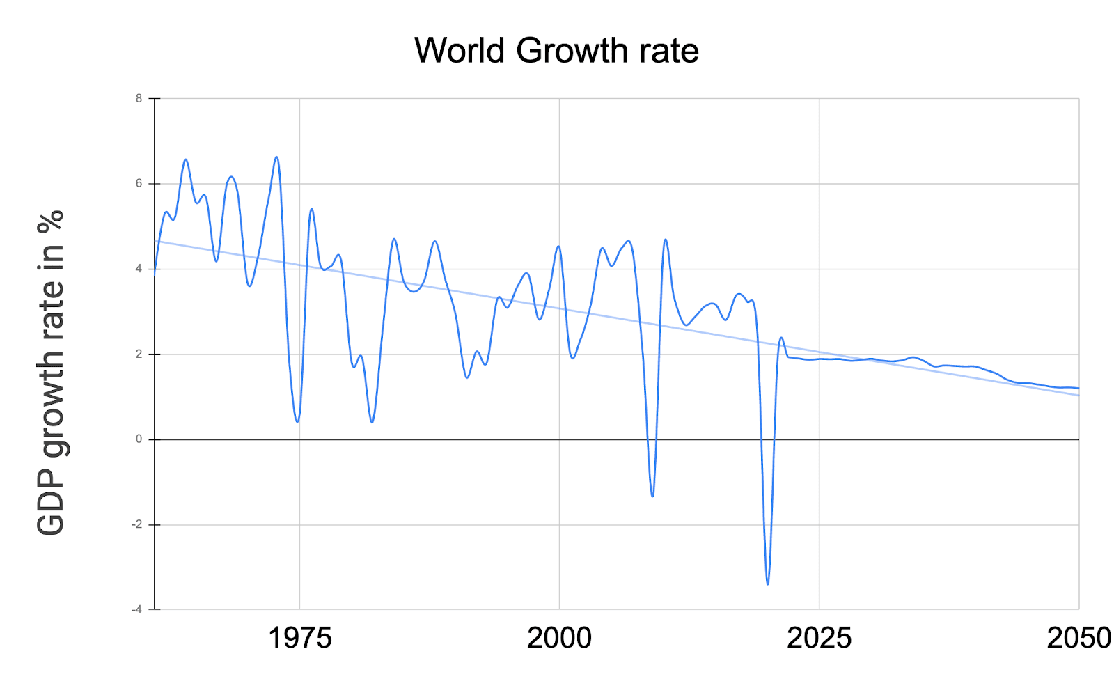 I think there's a good chance the degree to which the world of 2050 looks different to the average person might have very little to do with GDP.