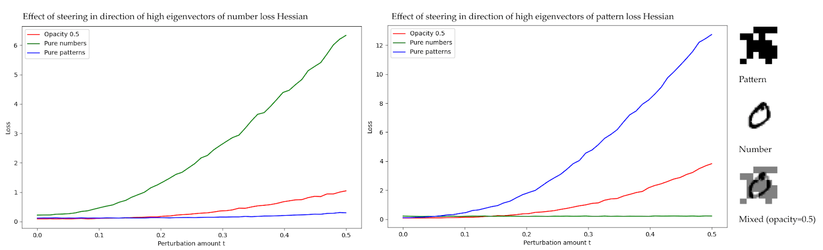In our work, we demonstrate that the answers to all these questions -- including the ambitious versions -- are affirmative for appropriate networks. As our main tool for mechanistically accessing and manipulating generalization circuits, we use some techniques inspired by mathematical physics (and involving a study of the Hessian eigenvectors of a model: a mathematical method for finding spaces of "maximally salient" steering vectors). We perform our tests on certain small classifier neural nets trained on carefully selected data sets (chosen to have legibly distinct generalizations). However, our methods are extremely general and potentially applicable to any classifier neural net. In the three subsequent sections of this post, we will explain how we set up our experiments and use our Hessian eigenvector toolbox to answer these three questions one by one.
