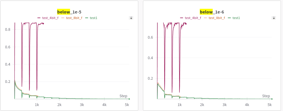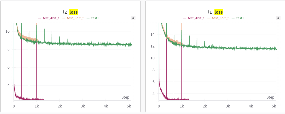 Few things happened as expected, the quant 4 model was so bad that that its activations are almost noise which means that the reconstruction accuracy, which is how good is our model when it is fed x vs. when it is fed x' is high. Because when you feed it x (the activations of the 4-bit quantized model with no sparse autoencoder) then the results are already really bad and the results remain bad when you feed it x'. It's like comparing garbage against garbage even if they are close, it tells us nothing. Other interesting thing is that the L2 and L1 loss are much lower, our sparse autoencoder learns to very accurately map x to x' but the "below_1e-5/1e-6" plots show that it doesn't learn any features while doing so, more than 80% of features are below 1e-5. It is as if it just zeros out a lot of features (which reduces L1) and just maps x to x' without learning any features.