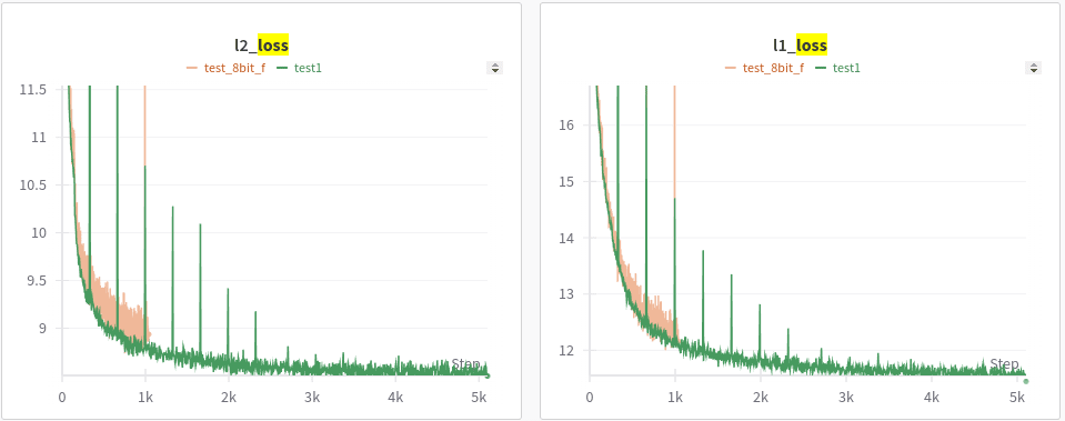 What do we learn from the above? First, is that the learning trend is similar (fast convergence of L2, phase transition and slower convergence of how many features are active). And as expected the 8-bit reconstruction accuracy is slightly behind full precision and similarly the number of features that are active is also slightly behind. This is in line with what we know already, 8 bit makes the model worse but it's not that bad. For most LLMs int8 and fp16 are very close. A better analysis here would be to look at specific features (which I try to cover in a later section)