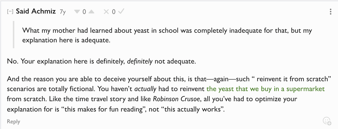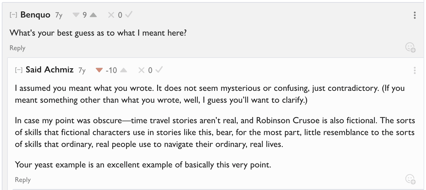 And to be clear, this is all a pretty tricky topic. It is not rare for whole social groups, including the rationality community, to pretend to misunderstand something. As the moderators it's part of our job to take into account whether the thing that is going on here is some social immune reaction that is exaggerating their misunderstandings, or maybe even genuinely preventing any real understanding from forming at all, and to adjust accordingly. This is hard.
