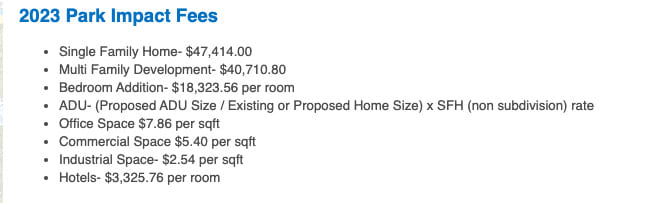 Redwood City charges a $47,414 ‘park impact fee’ to build a new single family home.