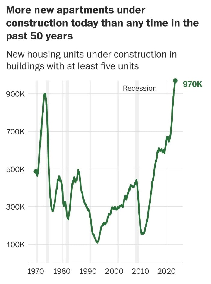 Overall, we’re somewhat back, definitely not all that back. Journalists quote a Harvard study as saying we have a 50-year high in housing construction, without noting that we also have 100 million more people to build houses for. The report says there is a national shortage, reporting on it says there’s a surplus. Sigh. As report recommends, we need more houses in places people want to live, as well as ones that people can afford, which is highly causally related.