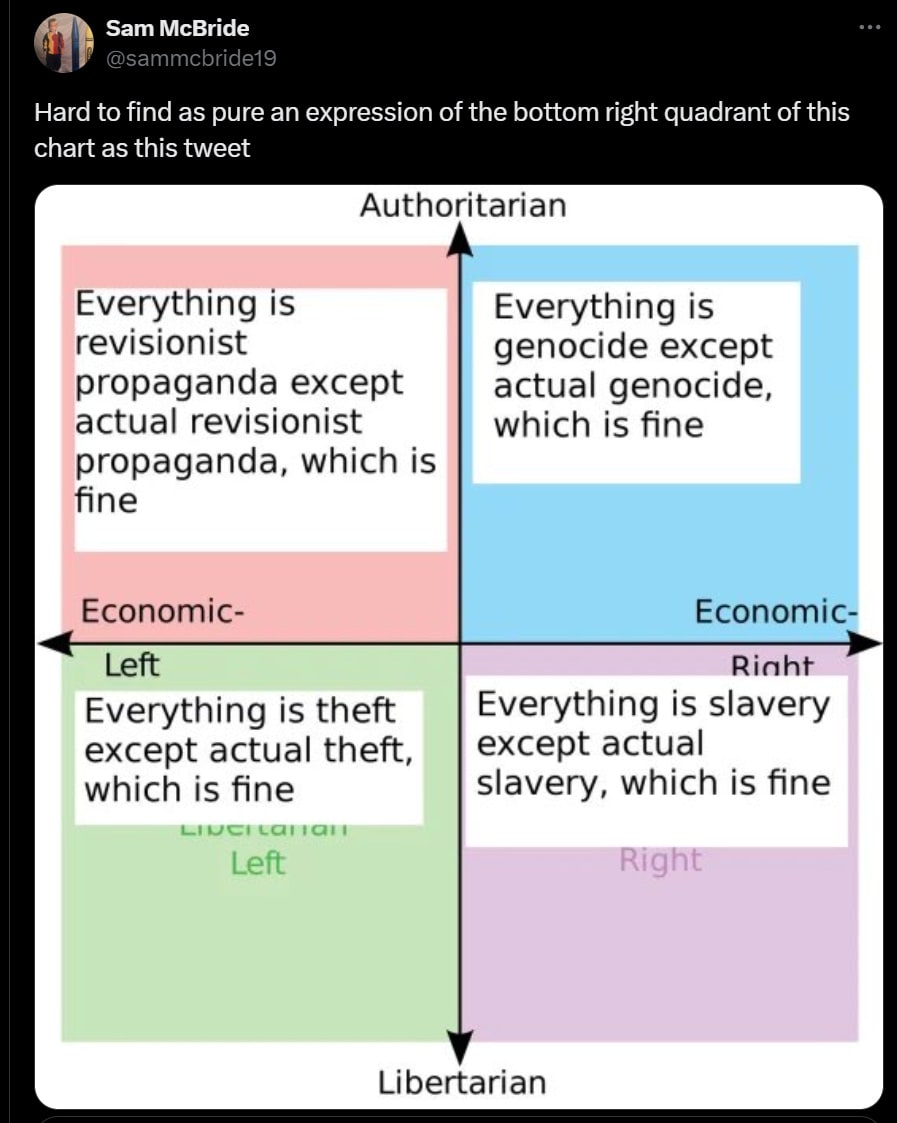 Zvi is talking about those people who use libertarianism as a gloss for "getting what they want." In other words, people who aren't into liberty per se, but only into liberty to the extent it satisfies their preferences. There probably is, and if there isn't, there should be, a word for people who invoke liberty this way. That way, when talking about the sort that, for instance, want children to be allowed to read the Bible in the classroom (because LIBERTY!) while simultaneously wanting to ban some book on trans-youth (because PARENTS RIGHTS), we can say: oh, yes, that (word) is at it again. I mean, hypocrite for sure, and perhaps gaslighter, but we need a better word. Well, if there is an existing word, please let me know. There are so many of these sorts out and about, they easily dwarf the population of libertarians.