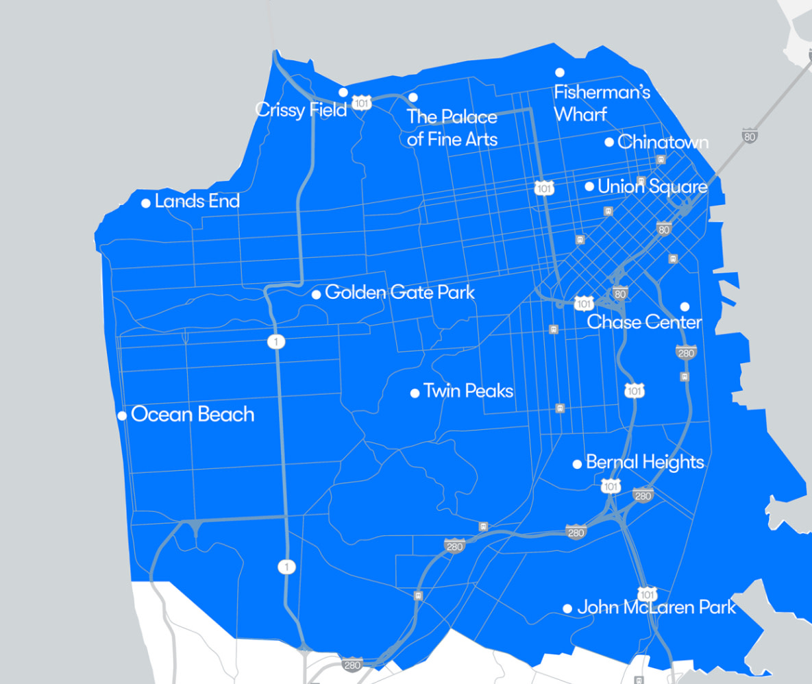 I strongly agree. The self-driving business model depends on reaching critical mass of scale and geographic coverage. In San Francisco, you can already cover the central area, and they are planning to extend this south as far as Sunnyvale, which would include the airport. The East Bay is still missing, which will make this less exciting for my standard trips into town, but this is already a big game.