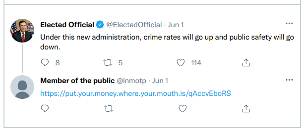 Honestly, I was skeptical (people won’t trust it, etc) but I think it functions great as an argument taunt. “Easy 20 bucks for you if you’re really so sure.”