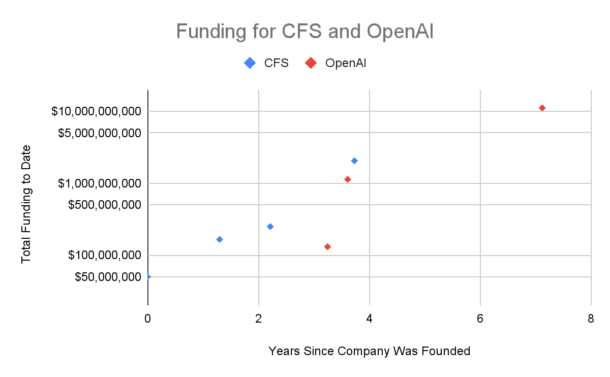 OpenAI was founded 2-3 years before Commonwealth Fusion Systems.[2][3] Other than that, their trajectories have been surprisingly similar.